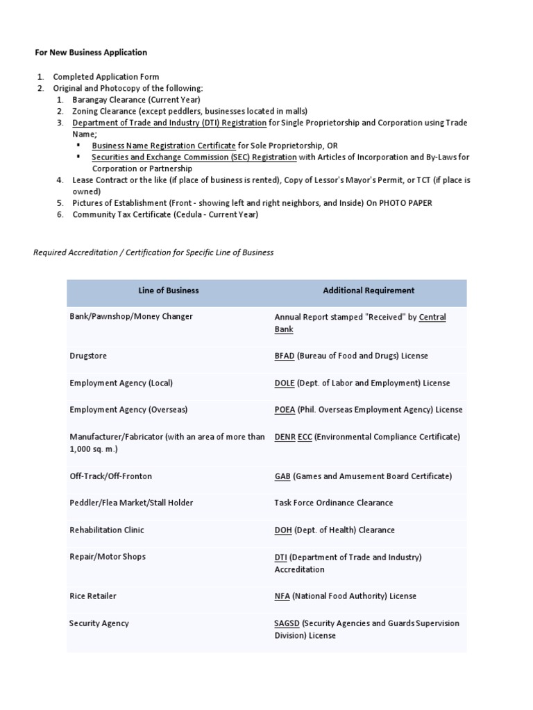 Official receipt from last years payment. List of Requirements for Obtaining a Mayors Permit in the Philippines. Lines of Business CHECKED BY.