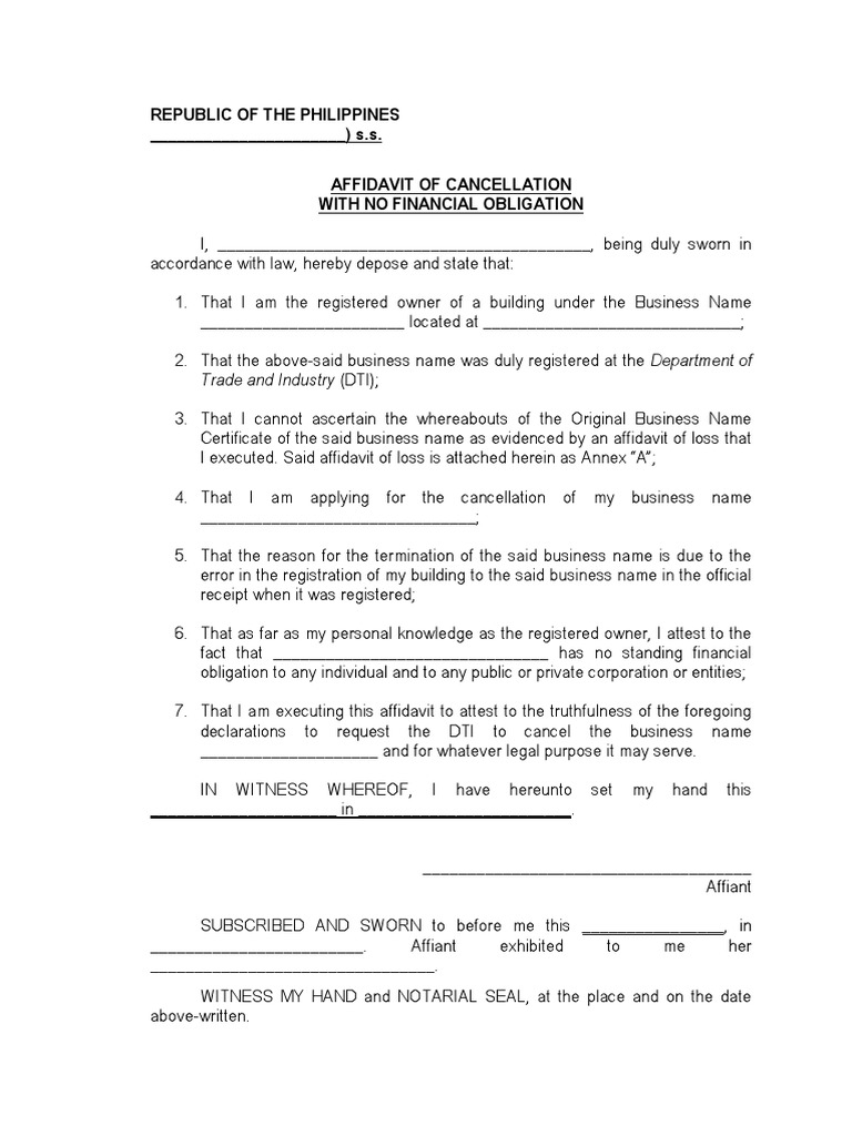 Dti Business Name Registration Faqs Identity Document Affidavit